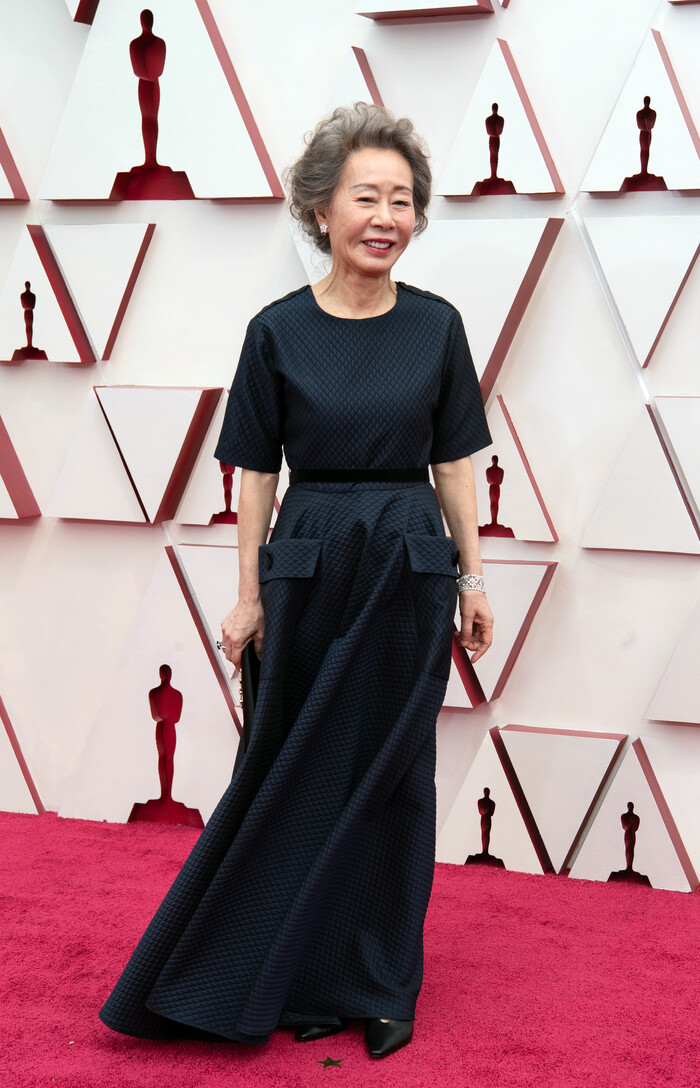 윤여정은 한국 영화사에 길이 남게 될 이번 아카데미 시상식에서 착용한 의상으로도 화제를 불러모았다.