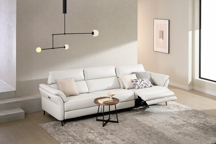 디자인 측면에서도 완성도를 높였다. 슬림한 곡선형 팔걸이와 위로 갈수록 날렵해지는 삼각형 헤드 디자인을 적용해 리클라이너 소파 특유의 무거운 인상을 줄이고 간결한 실루엣을 구현했다. 소재는 이탈리아 펠레밀라노(PELLE MILANO)의 천연 소가죽을 사용했으며, 절개선을 최소화해 통가죽 특유의 질감을 살렸다. 이탈리아산 수성 염료를 적용해 변색을 줄이고 색상 유지력도 강화했다.