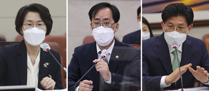 ▲ 임혜숙 과학기술정보통신부(왼쪽부터), 박준영 해양수산부, 노형욱 국토교통부 장관 후보자가 지난 4일 각각 국회 해당 인사청문회에서 답변하는 모습. [사진= 연합뉴스] |