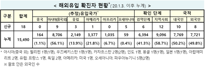 ▲ 20일 0시 기준 코로나19 해외유입 확진자 현황. [질병관리청 제공] |