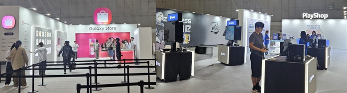▲ 공식 파트너사 갤럭시 스토어(좌), 플레이스테이션 부스 [사진=메가경제] |