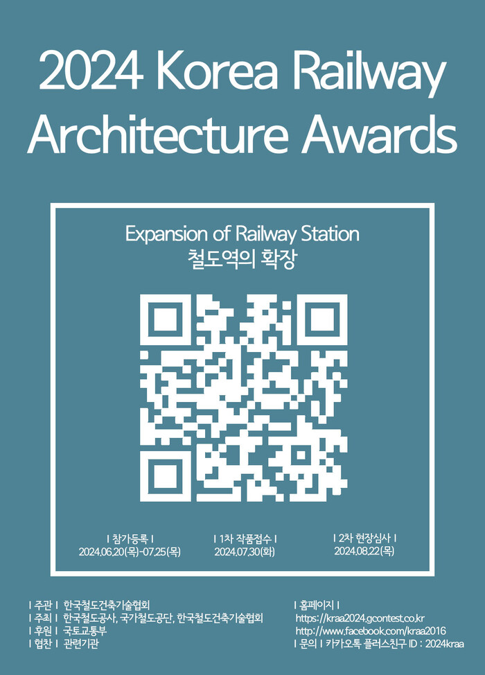 ‘철도역의 확장(Expansion of Railway Station)’을 주제로 하는 이번 공모전은 국내외 대학(원) 건축 관련학과의 재학생과 일반국민이라면 누구나 참가 가능하며, 국내 철도역사(지하철역사 포함)에 대한 신축·증축 설계 아이디어와 ▲국내 철도 역세권 및 유휴철도부지에 대한 도시·건축적 제안 또는 개발안 ▲국내 철도시설에 대한 건축적 제안을 설계 작품 형식으로 공모전 공식 누리집)에서 접수받는다.