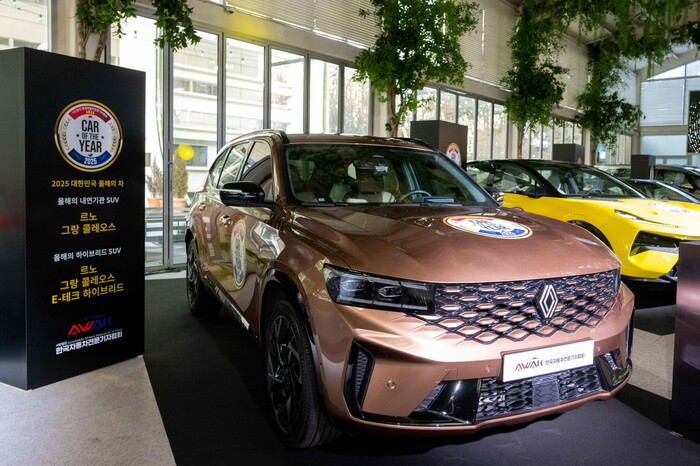 [메가경제=이동훈 기자] 르노코리아(대표이사 스테판 드블레즈)의 중형 SUV 그랑 콜레오스가 18일 서울 장충동에서 개최된 한국자동차전문기자협회(AWAK) 주관 ‘2025 대한민국 올해의 차(Car of The Year)’ 시상식에서 2관왕을 차지했다. 그랑 콜레오스는 ‘올해의 하이브리드 SUV’, ‘올해의 내연기관 SUV’ 부문상을 동시에 수상하며 우수한 상품성을 재차 입증했다.