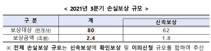 | ▲ 2021년 3분기 손실보상 규모. [중소벤처기업부 제공] |