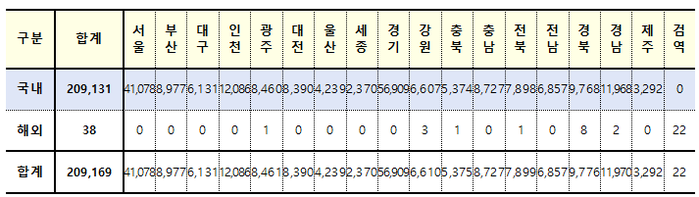 지역발생 확진자 중 52.6%인 11만73명은 수도권에서 확진됐다. 47.4%인 9만9058명은 비수도권에서 나왔다.