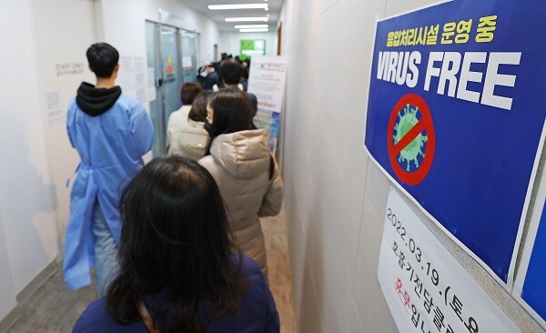 ▲ 20일 서울의 한 호흡기전담클리닉으로 지정된 병원을 찾은 시민들이 코로나 검사를 위해 대기하고 있다. [사진=연합뉴스] |