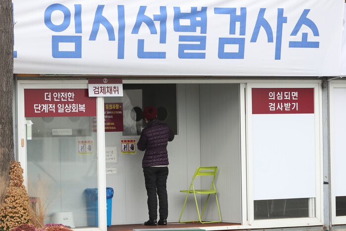 ▲ 12일 오전 전남 함평군 함평읍 함평엑스포공원 주차장에 마련된 임시 선별진료소에서 주민이 코로나19 진단검사를 받고 있다. 함평군은 지역 내에서 오미크론 변이 의심 확진자가 10여 명 발생하자 연쇄(n차) 접촉자들의 전수검사를 위해 임시 선별진료소를 운영했다. [함평=연합뉴스] |
