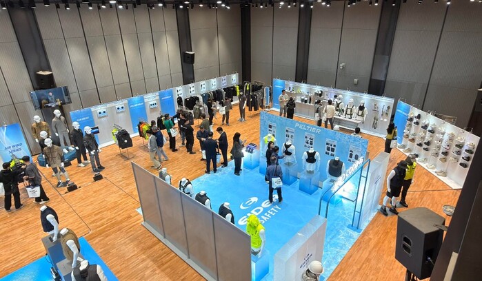 EIDER SAFETY는 지난해 처음 선보인 펠티어 제품군을 한층 강화해 소개했다. 펠티어는 전기를 이용해 한쪽 면은 차갑게, 반대쪽 면은 뜨겁게 만드는 열전소자 기술로, 피부 온도를 빠르게 낮출 수 있는 것이 특징이다. 이번 전시에서는 해당 기술을 팬웨어와 결합한 펠티어 팬웨어와 3구 구조의 펠티어 베스트 등을 선보이며 차별화된 냉각 솔루션을 제시했다.