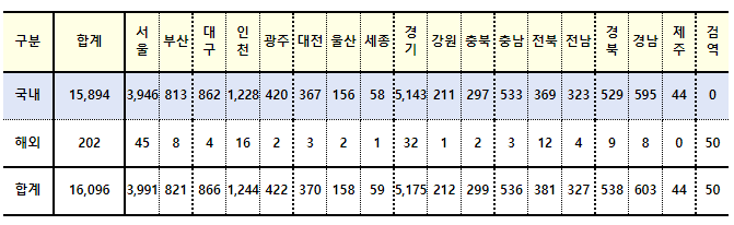 비수도권 지역에서는 대구(875명)와 부산(804명)이 800명을 넘었고, 경남(691명)은 600명대를, 경북(578명), 전북(558명), 충남(508명) 3개 지역은 500명대로 집계됐다.