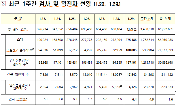 중앙방역대책본부(방대본)는 29일 0시 기준으로 신규 확진자가 1만7542명이 발생해 누적 확진자 수는 81만1122명(해외유입 2만4842명)으로 80만 명을 넘어섰다.