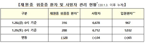 ▲ 29일 0시 기준 코로나19 위중증 환자 및 사망자 관리 현황. [중앙방역대책본부 제공] |