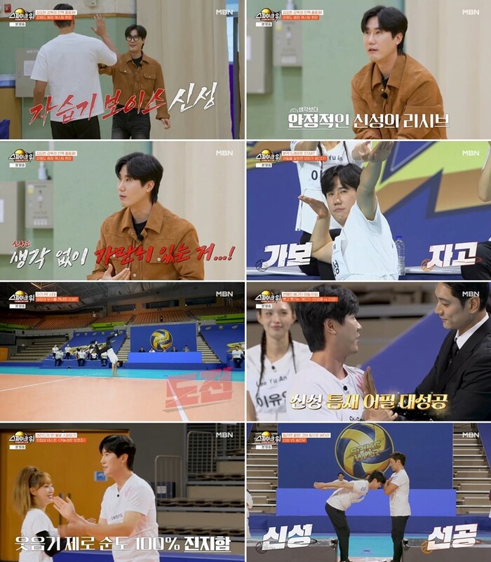 11월 30일 첫 방송한 MBN ‘스파이크 워’는 18×9m 코트에서 펼쳐지는 스타들의 배구 전쟁을 담은 신개념 예능. 신성은 ‘배구계 전설’ 김요한 감독의 갑작스러운 호출로 현장에서 즉석 캐스팅에 합류했으며, 야구선수 출신 이대형, 농구선수 출신 우지원, 배드민턴 국가대표 이용대와 함께 테스트에 참여했다. 이 과정에서 신성은 김요한 감독의 강력한 서브를 움직임 없이 받아내며, 이른바 ‘리시브 목석’ 재능을 선보여 놀라움을 안겼다.