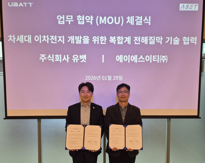 [메가경제=정호 기자] 에이에스이티가 차세대 이차전지 개발을 위해 유뱃과 협력에 나섰다.
