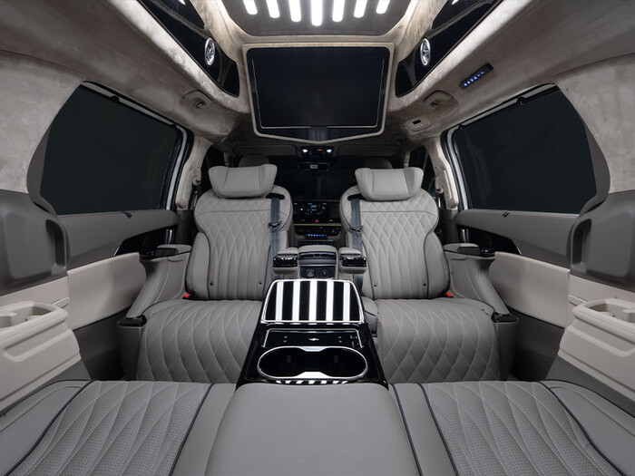 PACKAGE 3는 1열 리무진 시트, 2열·3열 의전 시트, 프리미엄 대리석 플로어를 기본 적용한 구성으로, 의전과 일상 사용을 모두 고려했다. 선택 사양을 최소화해 완성도 중심의 패키지로 운영된다.