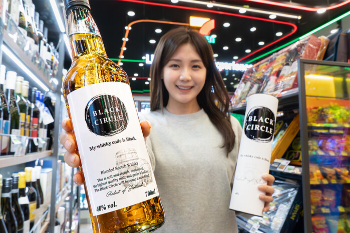 블랙서클 위스키는 세븐일레븐이 지난해 방송인 신동엽, 셀럽 IP 전문회사 메코이와 협업해 선보인 제품이다. 세계적인 스카치 위스키 증류소 원액을 블렌딩해 깊은 풍미와 부드러운 목넘김을 구현했으며, 신동엽이 원액 시음부터 패키지 디자인까지 직접 참여했다.