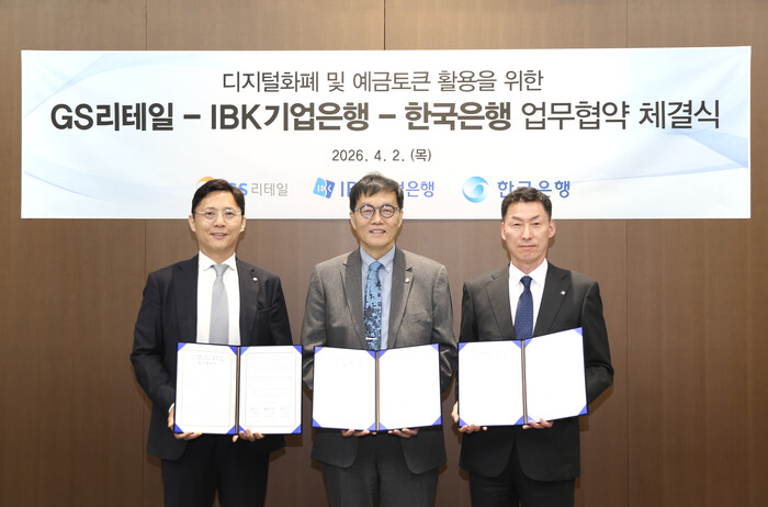 GS리테일은 IBK기업은행, 한국은행과 전략적 파트너십(이하 업무협약)을 체결하고 예금 토큰 상용화를 위한 인프라 구축에 나선다고 2일 밝혔다.
