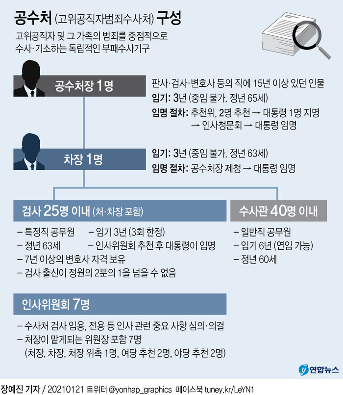 | ▲ 고위공직자범죄수사처(공수처) 구성도. [그래픽= 연합뉴스] |