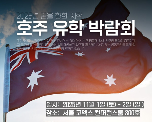 [메가경제=양대선 기자] 오는 11월 1일과 2일 서울 코엑스에서 ‘2025 서울 호주유학박람회’가 열린다. 이번 행사는 호주 유학에 관심이 있는 학생과 학부모를 대상으로 호주 교육 및 비자 제도 전반에 대한 종합적인 정보를 제공하는 국내 최대 규모의 호주유학 전문 행사다.
