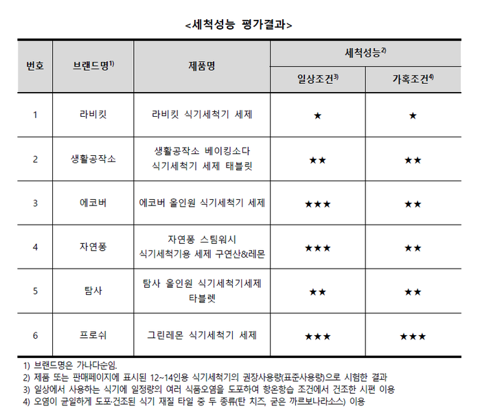 이번 시험은 소비자가 실제 가정에서 겪는 설거지 환경을 고려해 ‘일상 오염(식사 후 2시간 이내 세척)’과 ‘가혹 오염(음식물을 12시간 동안 방치하거나 고온에서 탄 오염)’ 두 가지 조건으로 진행됐다.