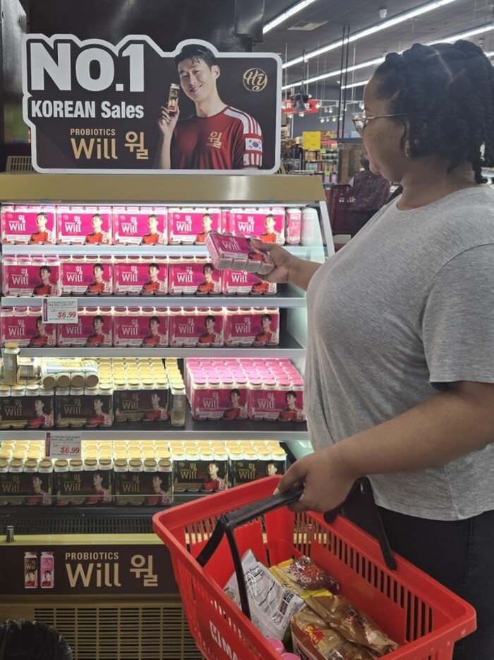 | ▲ 미국 H마트에서 한 외국인이 '윌'을 구매하고 있다. [사진=hy] |