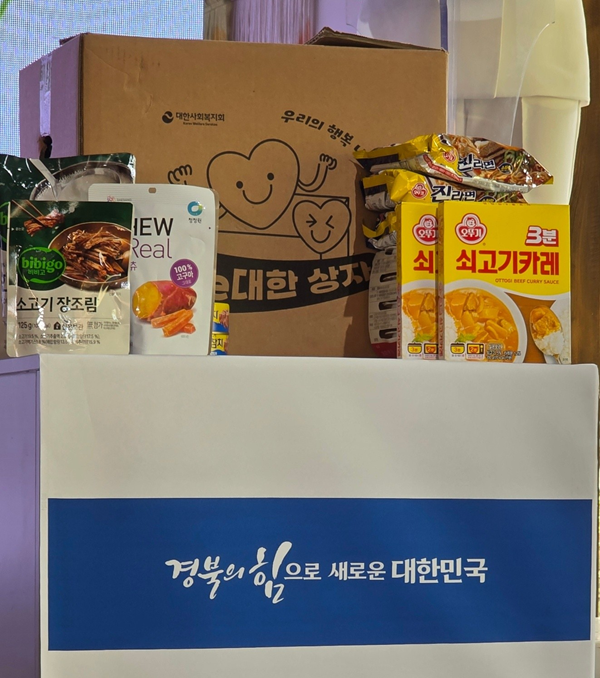 | ▲ 경북 사회적경제 기업의 기금을 통해 도내 한부모가정에 매월 전달되는 대한사회복지회 ‘We대한 상자’와 생필품 구성품 |