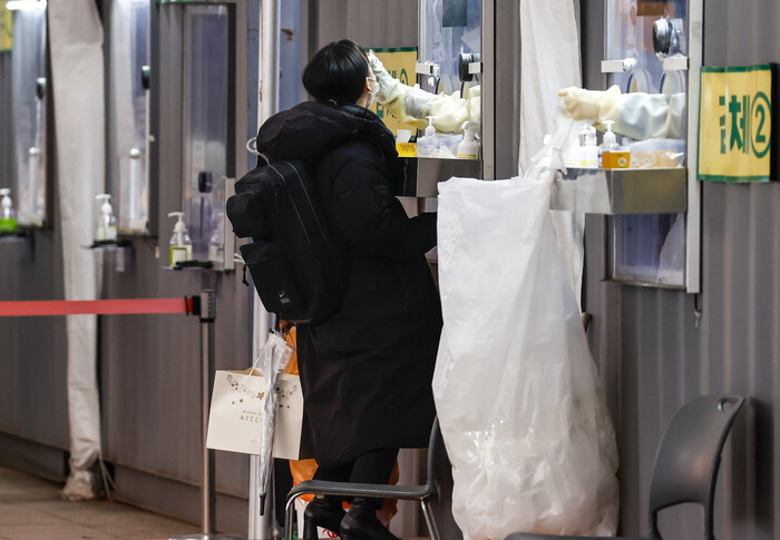 ▲ 크리스마스 이브인 24일 서울시청 앞 광장에 마련된 코로나19 임시 선별검사소에서 케이크를 든 시민이 검사를 받고 있다. [사진=연합뉴스] |