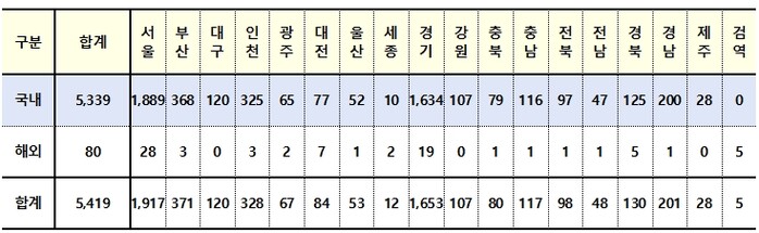 신규 확진자 중 국내감염(지역발생) 사례는 5339명이고, 해외유입 사례는 80명이다.