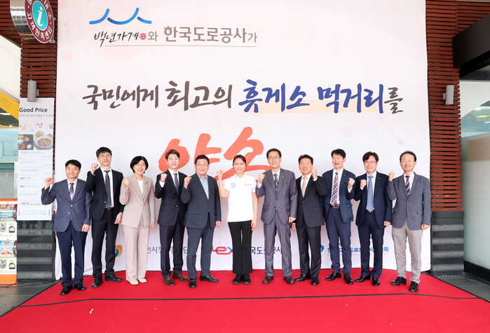 [메가경제=장준형 기자] 한국도로공사(사장 함진규)는 12일 경부고속도로 칠곡휴게소(부산방향)에서 소상공인시장진흥공단(이사장 박성효), (사)한국고속도로휴게시설협회(협회장 정승환)와 고속도로 휴게소 내 '백년가게' 유치 및 운영 활성화를 위한 업무협약을 체결했다고 12일 밝혔다.