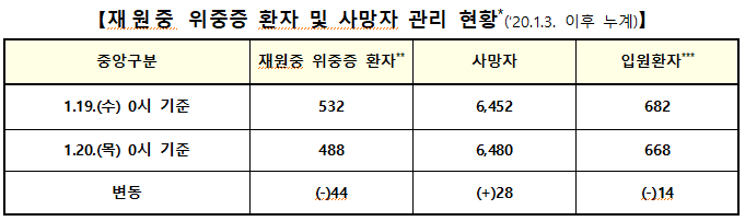 ▲ 재원중 위증증 환자 및 사망자 관리 현황. [중앙방역대책본부 제공] |