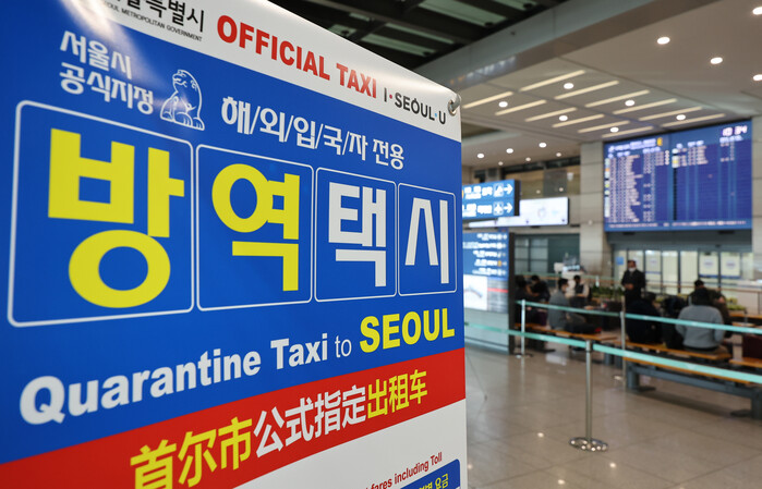 ▲ 오미크론 변이 대유행으로 확진자가 급증하면서 해외 입국자 방역 관리 조치가 강화된 20일 영종도 인천국제공항 제1여객터미널 입국장에 '방역택시' 안내판이 세워져 있다. 이날부터 모든 해외 입국자들은 일반 대중교통이 아닌 방역버스, 방역열차, 방역택시를 이용해야만 한다. 다만 입국자들이 본인 차량을 이용해 이동하는 것은 허용된다. [영종도=연합뉴스] |