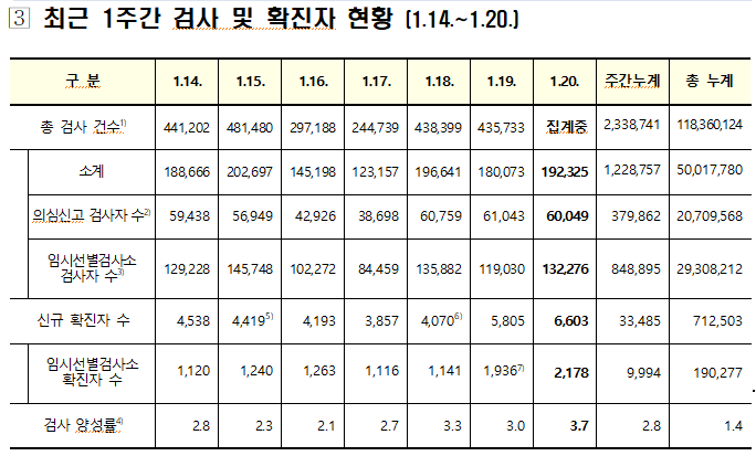 전날 검사자 수는 의심신고 6만49명과 임시선별검사소 13만2276명을 합쳐 총 19만2325명이었다. 의심신고 검사자 중에서 4425명(67.0%)이, 임시선별검사소 검사자 중에서 2178명(33.0%)이 각각 확진됐다.