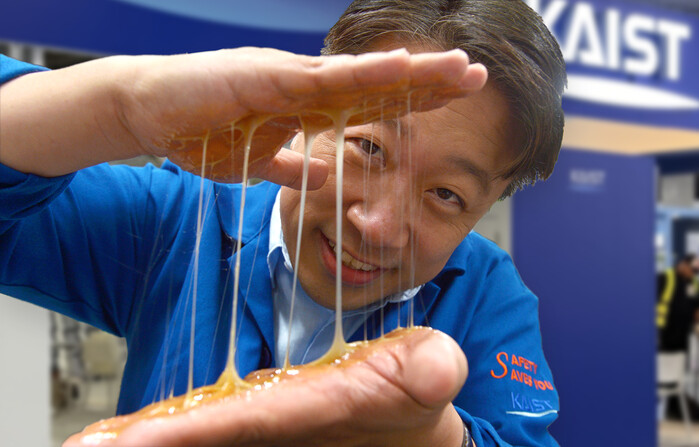 | ▲ 이해신 교수가 핵심원료를 시연하고 있다. |
