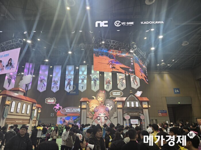 | ▲많은 인파가 몰린 엔씨소프트 '리밋 제로 브레이커스' 전시부스. [사진=메가경제] |
