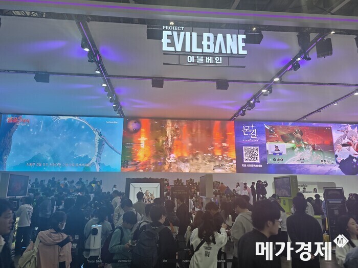 | ▲넷마블이 2025 지스타 행사장에 마련한 이블베인 전시부스. [사진=메가경제] |