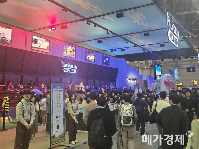 | ▲많은 인파가 몰린 크래프톤 '팰월드 모바일' 시연부스. [사진=메가경제] |