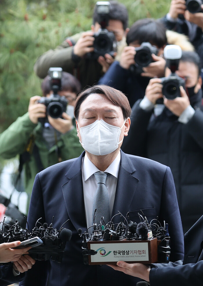 ▲ 윤석열 검찰총장이 4일 서울 서초구 대검찰청에 출근해 자신의 거취 관련 입장을 밝히고 있다. [서울= 연합뉴스] |