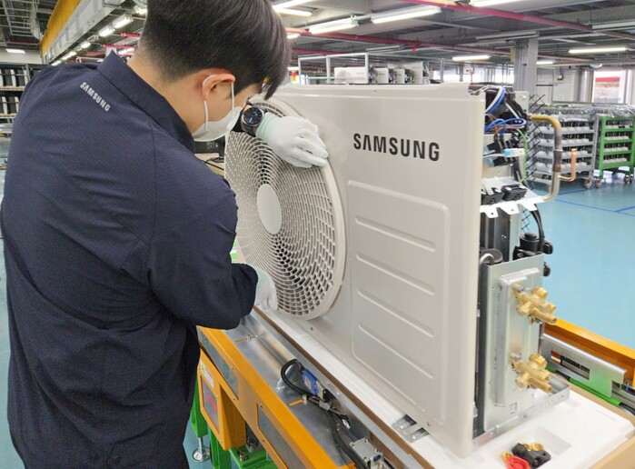 | ▲ 에어컨 생산라인을 가동하고 있다. [사진=삼성전자] |