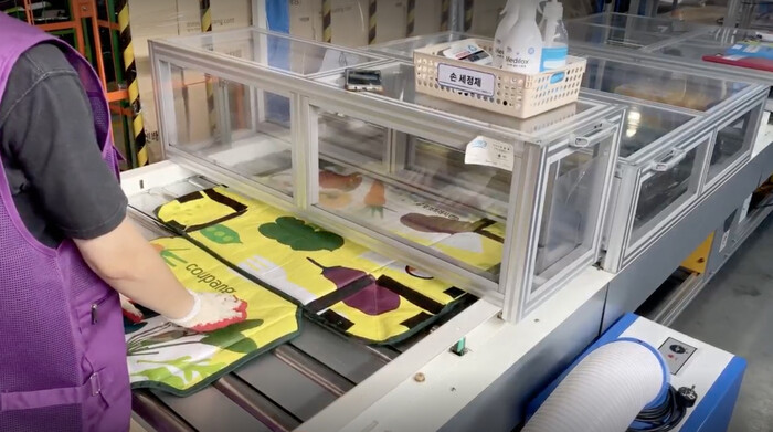 ▲ 로켓프레시백 세척 전담 인력이 전문설비를 통해 프레시백 세척을 진행하고 있다. [사진=쿠팡] |