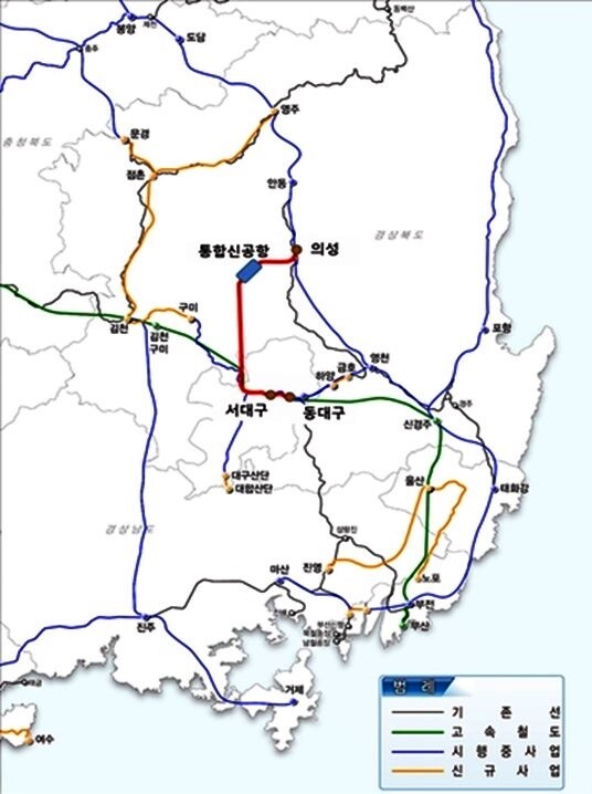 | ▲대구경북 신공항철도 노선도[사진=대구시 제공.연합뉴스] |