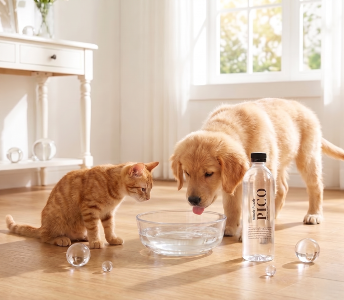 피코펫워터는 물 분자 클러스터 구조를 조정하는 공정을 적용한 것이 특징이다. 지하 암반수를 기반으로 일정 주파수를 활용해 약 120시간 동안 진동을 가하는 방식으로 물 입자 구조를 변화시키는 과정을 거쳤으며, 이를 통해 일반 물 대비 상대적으로 작은 클러스터 형태를 구현했다.