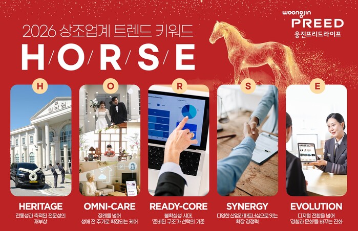 웅진프리드라이프는 이러한 변화의 흐름을 하나의 개념으로 정리해 ‘H.O.R.S.E’를 Heritage, Omni-Care, Ready-Core, Synergy, Evolution의 약자로 정의하고, 상조업계가 다음 단계로 도약하기 위해 주목해야 할 다섯 가지 트렌드 축으로 제시했다.