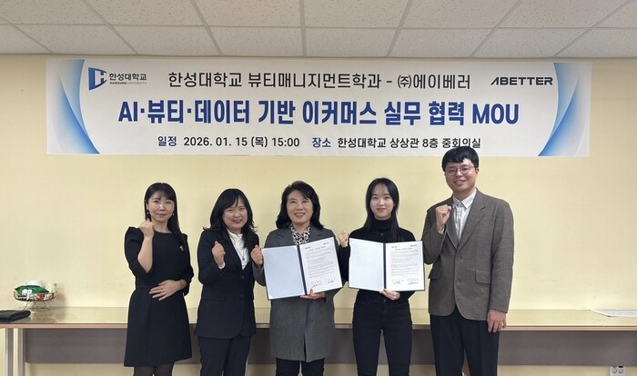 에이베러는 지난달 15일 서울 성북구 한성대학교 상상관에서 한성대 뷰티매니지먼트학과와 ‘AI·데이터 기반 이커머스 실무 교육 및 K-뷰티 산학협력 강화를 위한 업무협약(MOU)’을 체결했다고 2일 밝혔다.