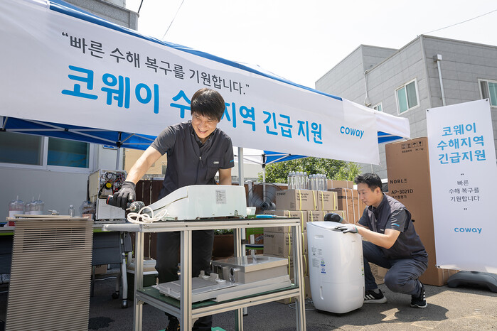 코웨이는 이번 폭우로 인해 침수된 렌탈 제품을 대상으로 무상 AS를 제공한다. 제품이 완전 침수 또는 파손되거나 유실되어 수리가 불가할 경우에는 새 제품으로 무상 교환 조치를 진행한다. 제품 피해로 사용하지 못한 기간에 대해서는 해당 기간만큼 렌탈료 할인을 지원한다.