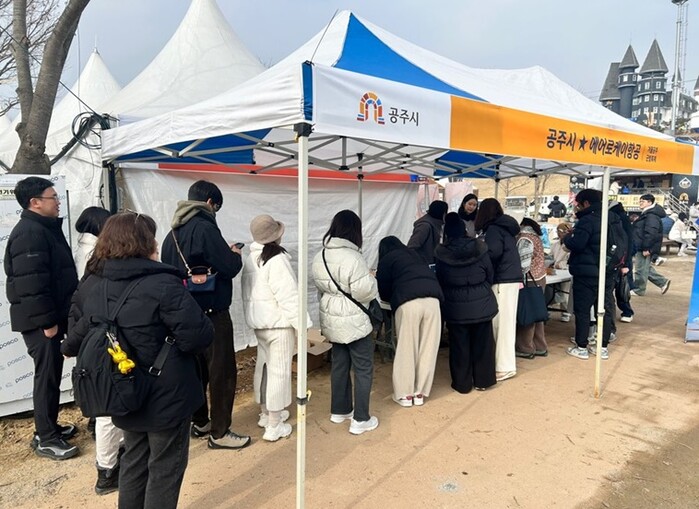 공주 지역은 물론 세종·대전·서울·인천·경기도 등 전국 각지에서 축제를 찾은 방문객들이 홍보부스를 찾고 있으며, 현장에서는 에어로케이항공 브랜드와 국제선 노선에 대한 관심이 자연스럽게 이어지고 있다. 홍보부스를 중심으로 관람객들의 대기 행렬이 형성되는 모습도 포착됐다.