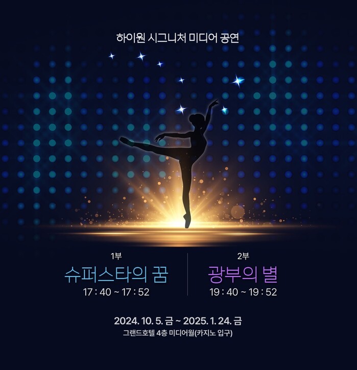 공연은 하이원 그랜드호텔 4층 카지노 입구에 설치된 미디어 화면을 캔버스 삼아 가상과 실제를 넘나드는 공연이 펼쳐지며, 하루 두 번 각기 다른 콘셉트로 진행된다.