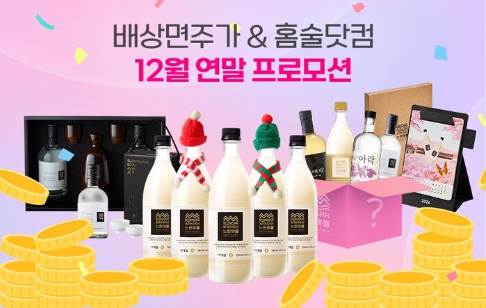 [메가경제=심영범 기자]배상면주가의 한국술 큐레이션 서비스 홈술닷컴은 연말연시를 맞아 12월 특별 프로모션을 진행한다고 18일 밝혔다.