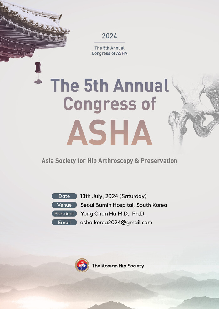 [메가경제=주영래 기자] 아시아 고관절 관절경학회(Asia Society for Hip Arthroscopy, 학회장 하용찬)는 7월 13일(토) 서울부민병원 미래의학센터에서 ‘The Best and the Brightest’라는 주제로 제5회 아시아 고관절 관절경 심포지엄을 개최한다.