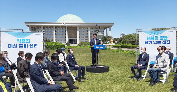 ▲ 더불어민주당 박용진 의원이 9일 서울 여의도 국회 잔디광장에서 제20대 대통령 선거 출마를 공식적으로 선언하고 있다. [사진= 연합뉴스] |