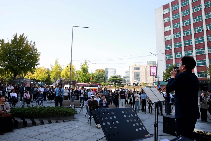 [메가경제=이동훈 기자] 태광그룹은 17일 서울 광화문 흥국생명빌딩에서 '해머링맨 가을음악회' 두 번째 행사를 진행했다. 음악회는 10월 말까지 매주 목요일 점심시간에 해머링맨 문화광장에서 열린다.