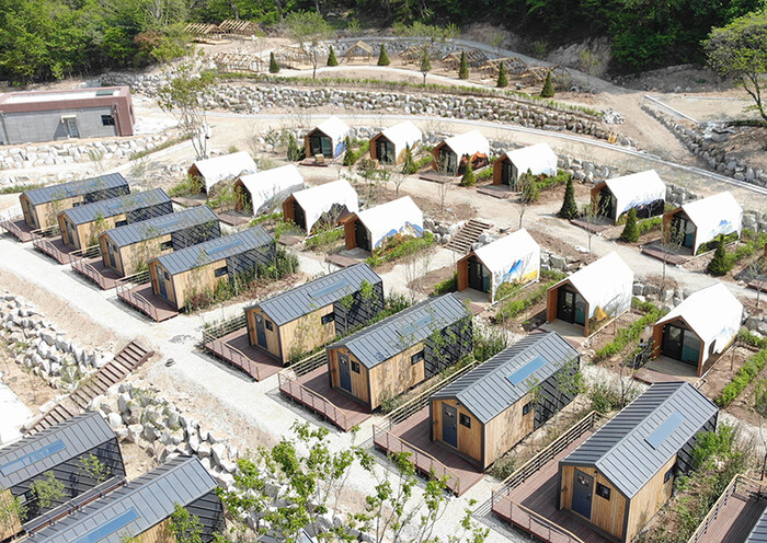 이중 체류 기반시설은 하우스형 카라반(20~35㎡) 17동과 하우스형 솔막(20㎡ 미만) 17동, 그리고 산막텐트 9동으로 구성돼 있다.